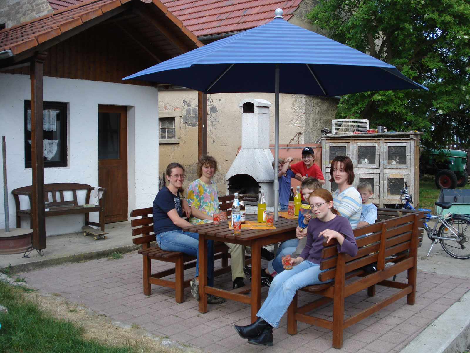 Sie finden in unmittelbarer Nähe zum Bauernhaus unseren Freisitz mit Steingrill, der gerne von unseren Gästen benutzt wird: