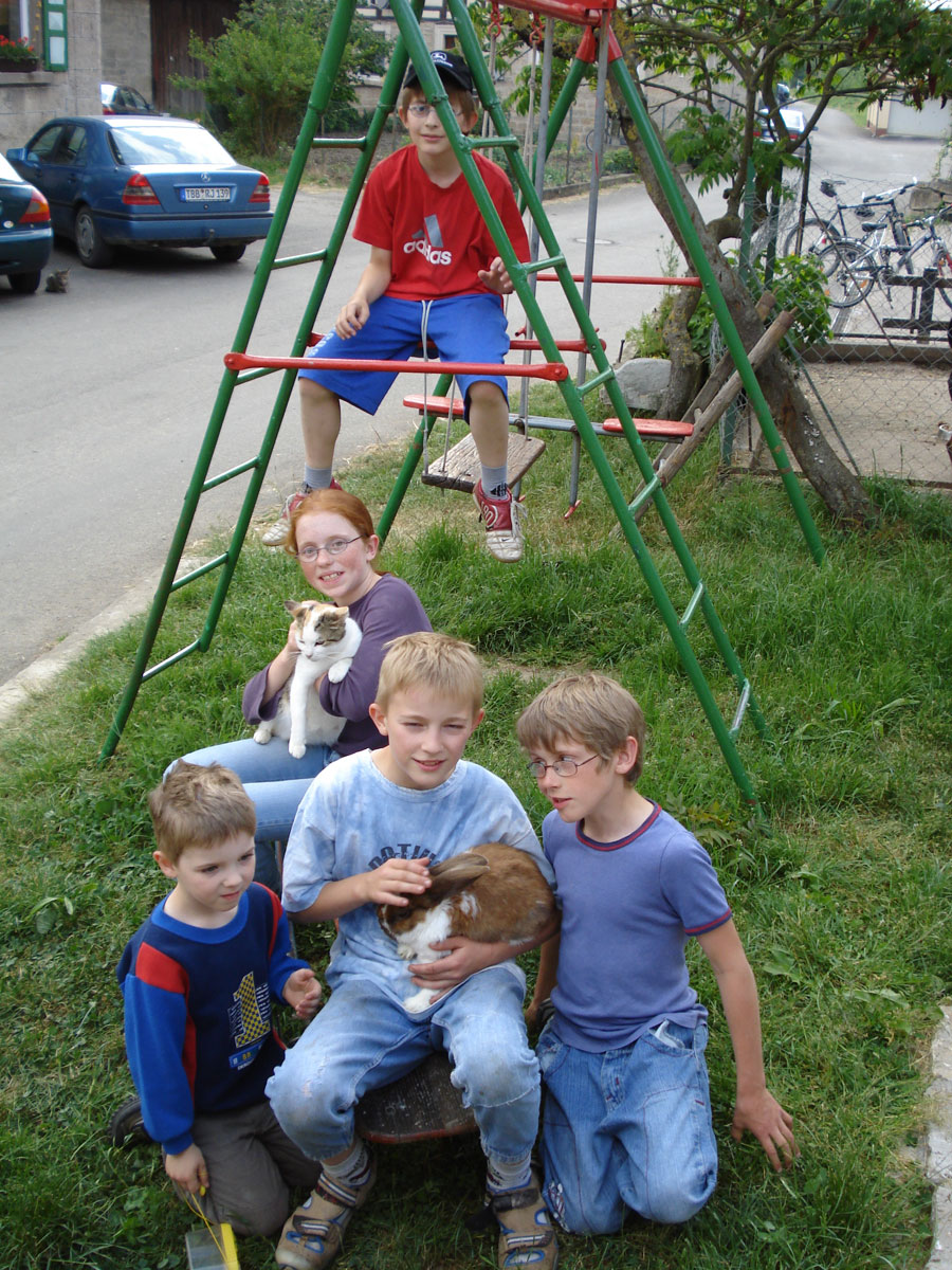 Zum einen direkt neben dem Freisitz und hinter der Scheune finden die Kinder einen tollen, großen Spielplatz mit Rutsche, Schaukel, Karussell und mehr, auf dem sie sich vergnügen können (klicken Sie auf die Bilder für eine vergrößerte Version):
